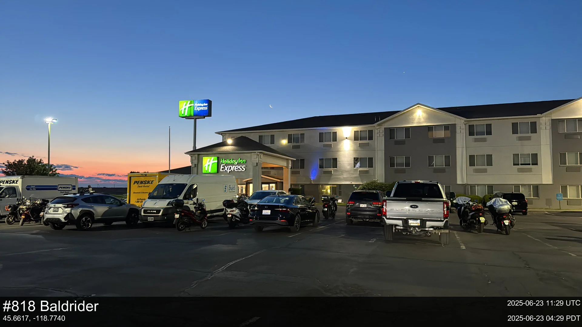 My wife greeted me at the door to our room and I started grabbing luggage. She saw how cold and tired I was and recommended I strip down and jump in the shower to warm up. I declined. Having already been on the road more than four hours and a ‘short’ 430 mile day ahead of me, I just wanted to get back on the road. As it was, I was already not going to get into that night’s stop in Pocatello until 7pm or later.