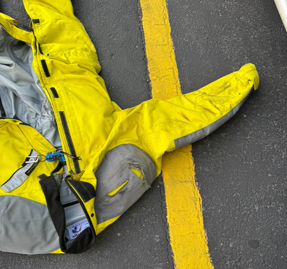 By the time my memory resumed, 911 had already been called. I remember somebody going up to Booger and hitting the kill switch and being helped up. Police and medics came. They were incredibly friendly. They thanked me for wearing full gear. When the call was made, they were told it was a motorcycle accident and they were prepared for the worst. The officer also said they had received a lot of calls for scooters, as well. People were complaining that they were impeding traffic by going too slow.