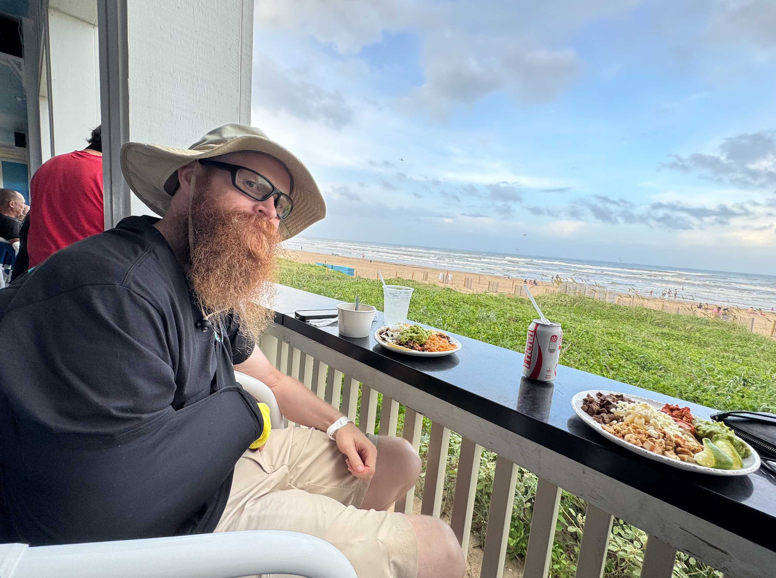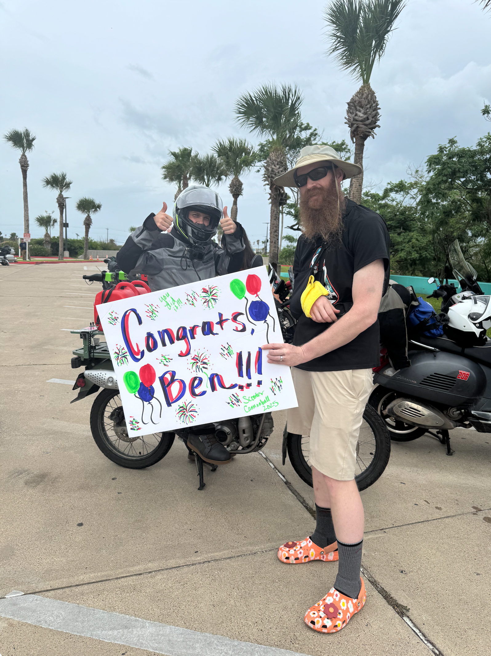 We arrived in South Padre ahead of my teammate. I communicated weather reports and other information to be as helpful as possible. My wife made a poster for him and we were there waiting at the finish when he arrived.